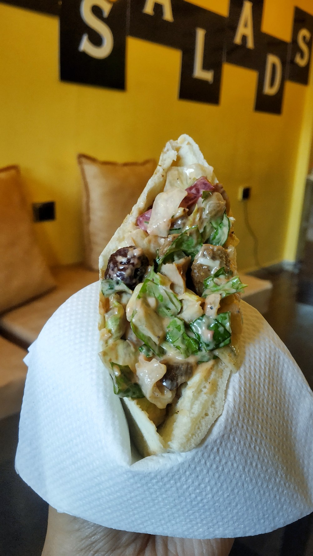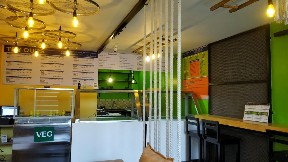 It has been around 10 months since they have opened their first branch in Banjara Hills. Their newest branch is in Gachibowli, right beside the Central Mall. Since, it is on the main road, this small salad parlour is easy to locate. Well…not that easy! You really need to look down!