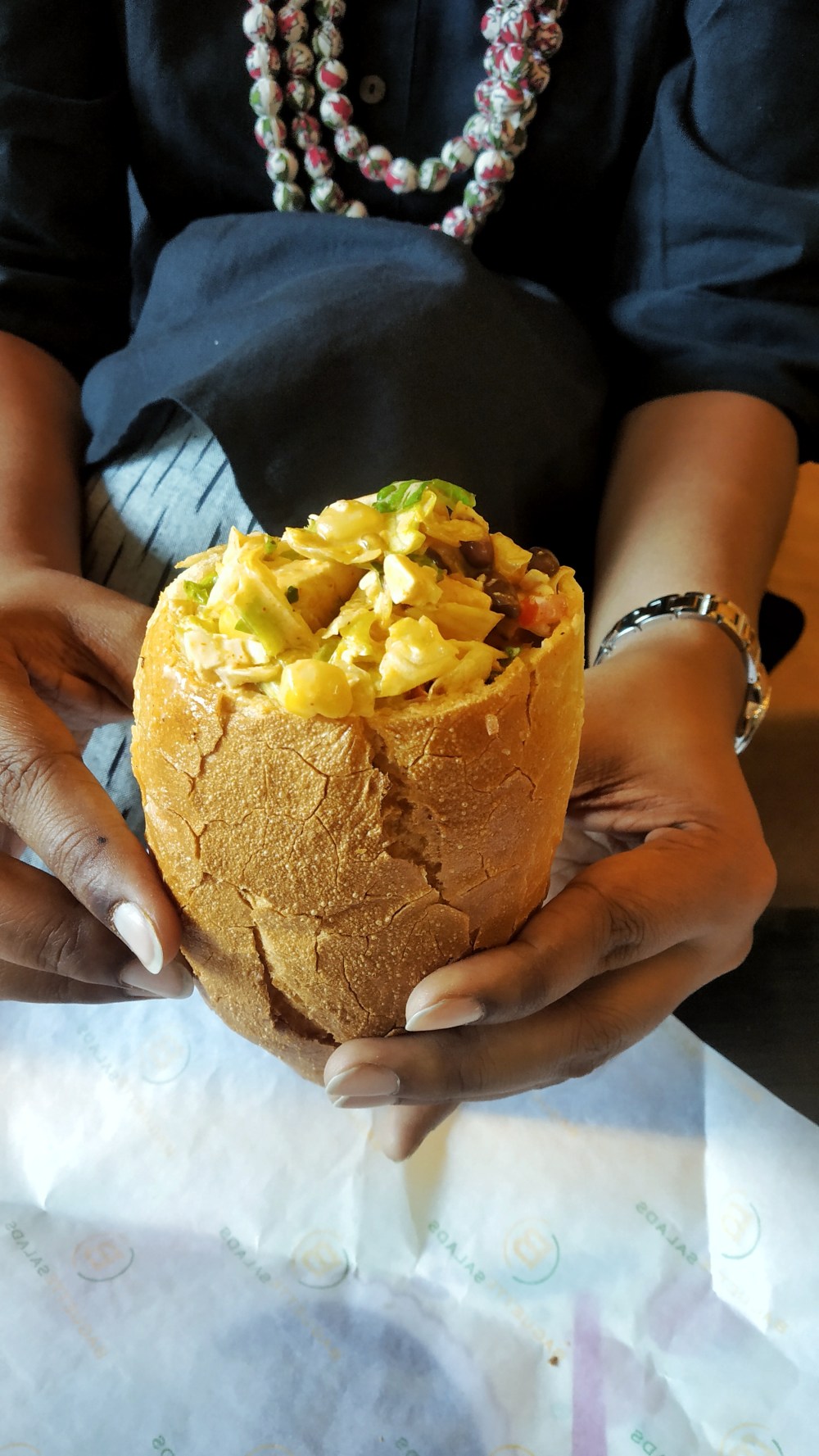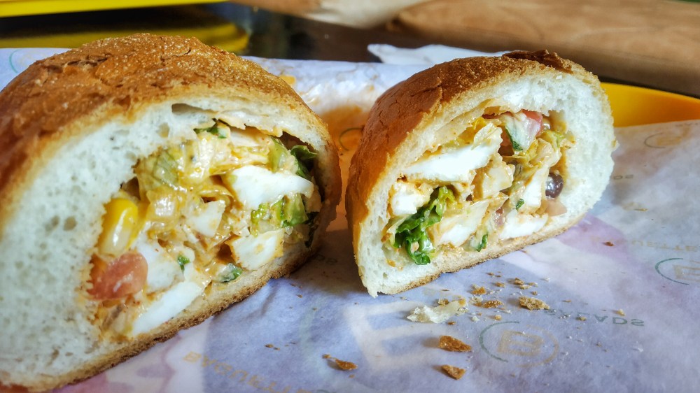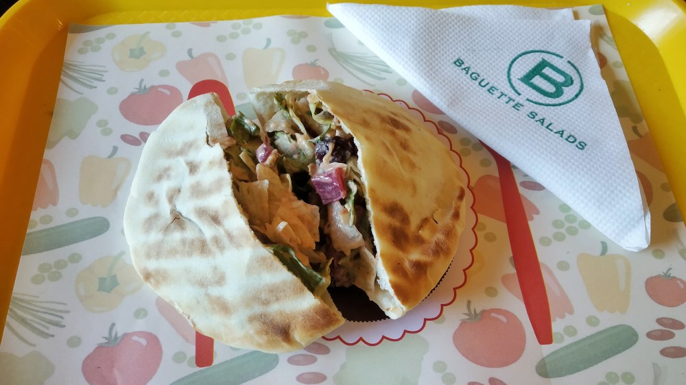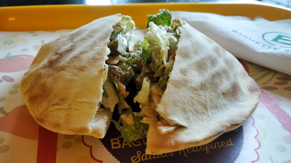 South Beach Veg Baguette with Chipotle Dressing : The main feature of a baguette is its cripsy crust! Even though this baguette’s crust was very crispy, the bread lacked moisture. It was very dry. The salad was a little spicy and had ingredients like paneer, tomatoes, corn, black beans, cheddar cheese, romaine lettuce, and avocado. All the ingredients were very fresh and the quality of paneer was also really good.