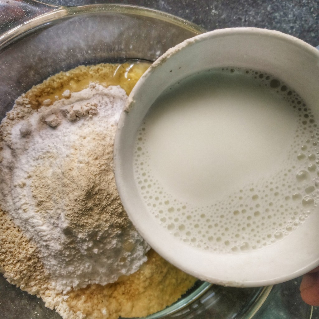 Note: I added powdered sugar so that it melts fasters in the batter. You can add sugar granules as well. Also, sugar can be substituted with coconut palm sugar or jaggery.