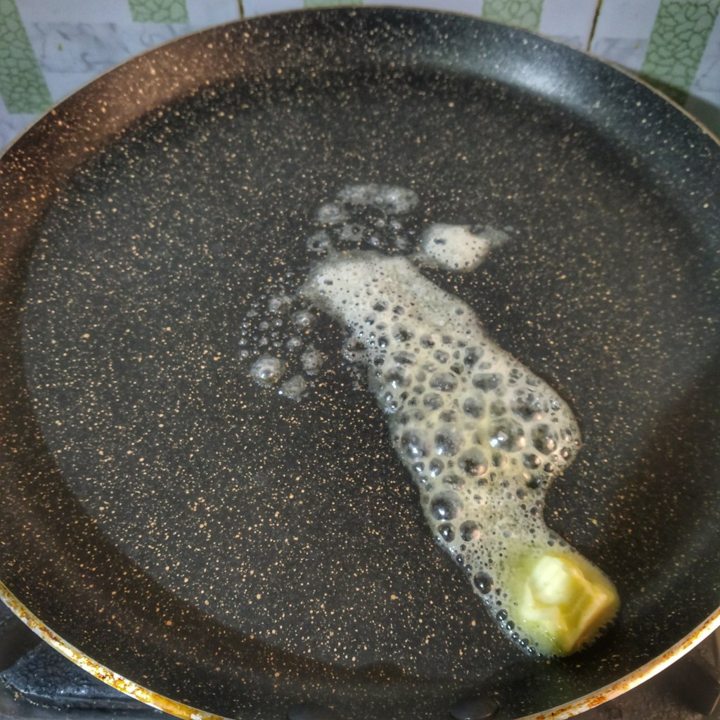 Pour some of the batter into the pan and fry it on low flame. Add the chopped dry fruits from top.